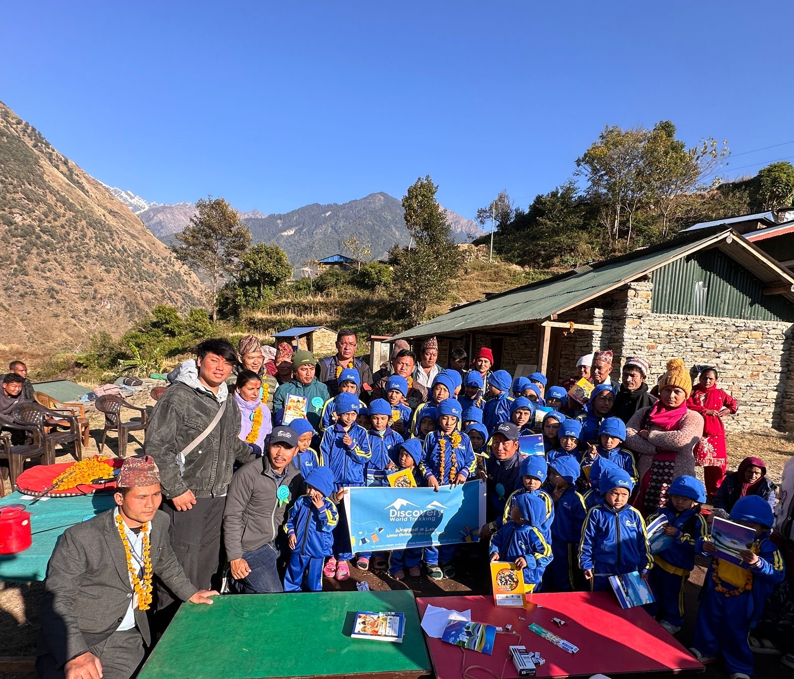 Discovery world trekking का संस्थापक पल गुरुङले विद्यालयका ४० जना बालबालिकालाई न्यानो कपडा सेट, स्टेशनरी सामग्री तथा सिकाइ उपलब्धि वृद्धि गर्न आर्थिक सहयोग प्रदान गर्नुभएको हो विगतमा पनि गुरुङले विद्यालय विकासका लागि ल्यापटप, प्रिन्टर लगायतका शैक्षिक सामग्री पनि हस्तान्तरण गर्नुभएको छ ।